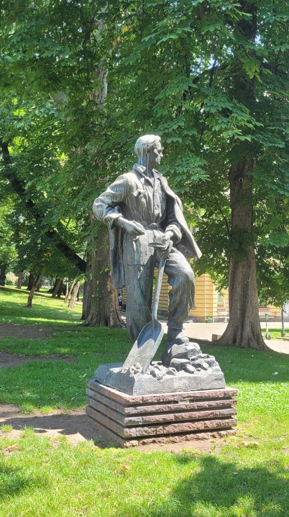 Another local hero was this poet and loud communist: Nikola Vaptsarov. Holding a shovel and a small book, where he was writing his poems when he had time. I hope the working hours in the communist system provided him enough time for his leisure.