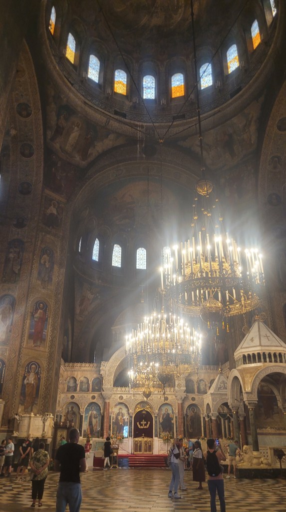 Saint Nedelya Cathedral is an Eastern Orthodox cathedral in Sofia, dating back to the 10th century. The relics of the Serbian king Stefan Uroš II Milutin are kept in the church. Now I understand why the old gypsy lady asked me in Serbian to donate her the money.