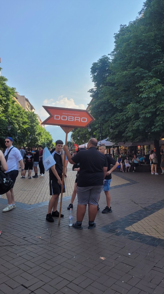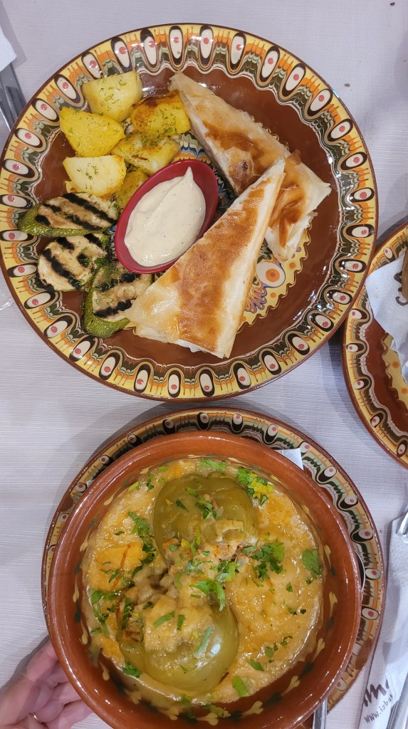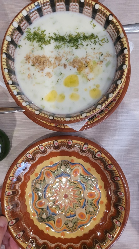 Dinner was again in some typical Bulgarian tavern. Walking the museums and streets, really makes you hungry for local dishes and cuisine. This time we tried Tarator – cold soup. I had stuffed paprika’s – but my mum makes them better 😛