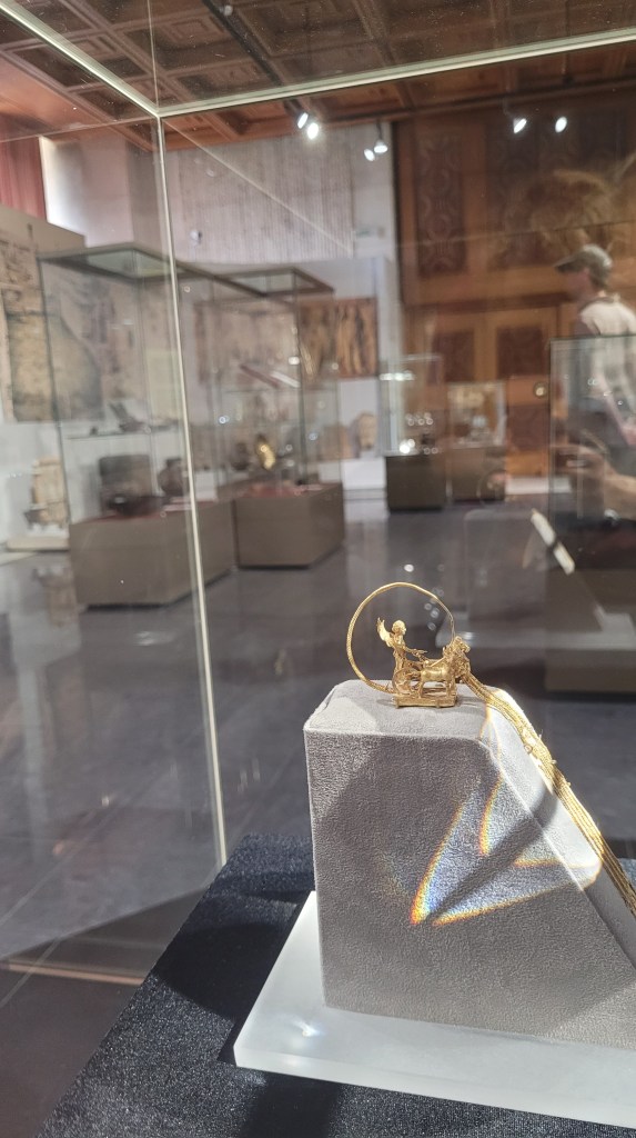 Couple of items that I found interesting in this building, like this golden earring representing a charriot with Goddess Nike, from the Greek times. Mid-3rd century before Christ.