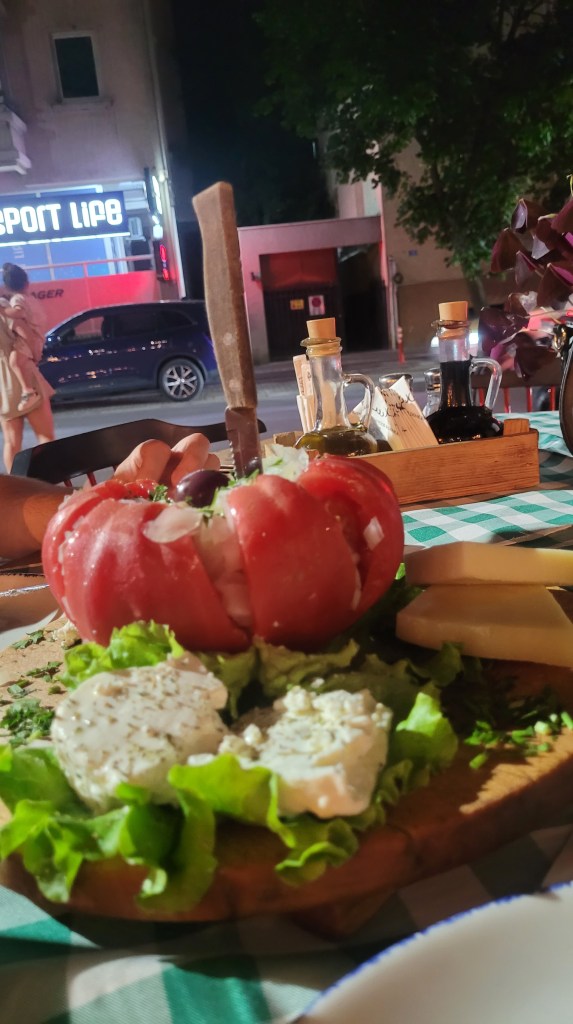 My very good friend from Skopje brought me up the city walls to eat typical local food: ajvar (various vegetables’ souce) and drink Skopsko beer. The place where we ate is called Čaršija and has many great restaurants with local food, music and the best view on the city.