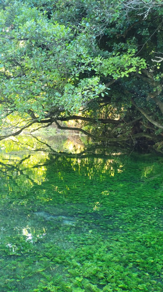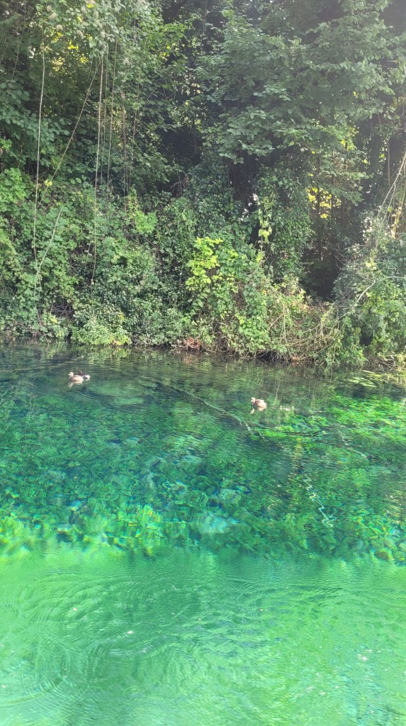 This beautiful peacock guides us to the sources of the lake. We ended up on a small boat with pure transparent water that looks like 30 cm deep but in reality, this was at least 3 metres in deep.