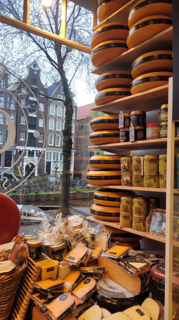 Although it was Eastern Monday, the shops in the city were opened and I had the opportunity to avoid the crowds and peacefully taste the cheese and eventually buy some 5 kilos of it. 😛 The owner of the shop was super kind and offered me some typical Dutch mustards that accompany the varieties of gouda and edam that I bought.
