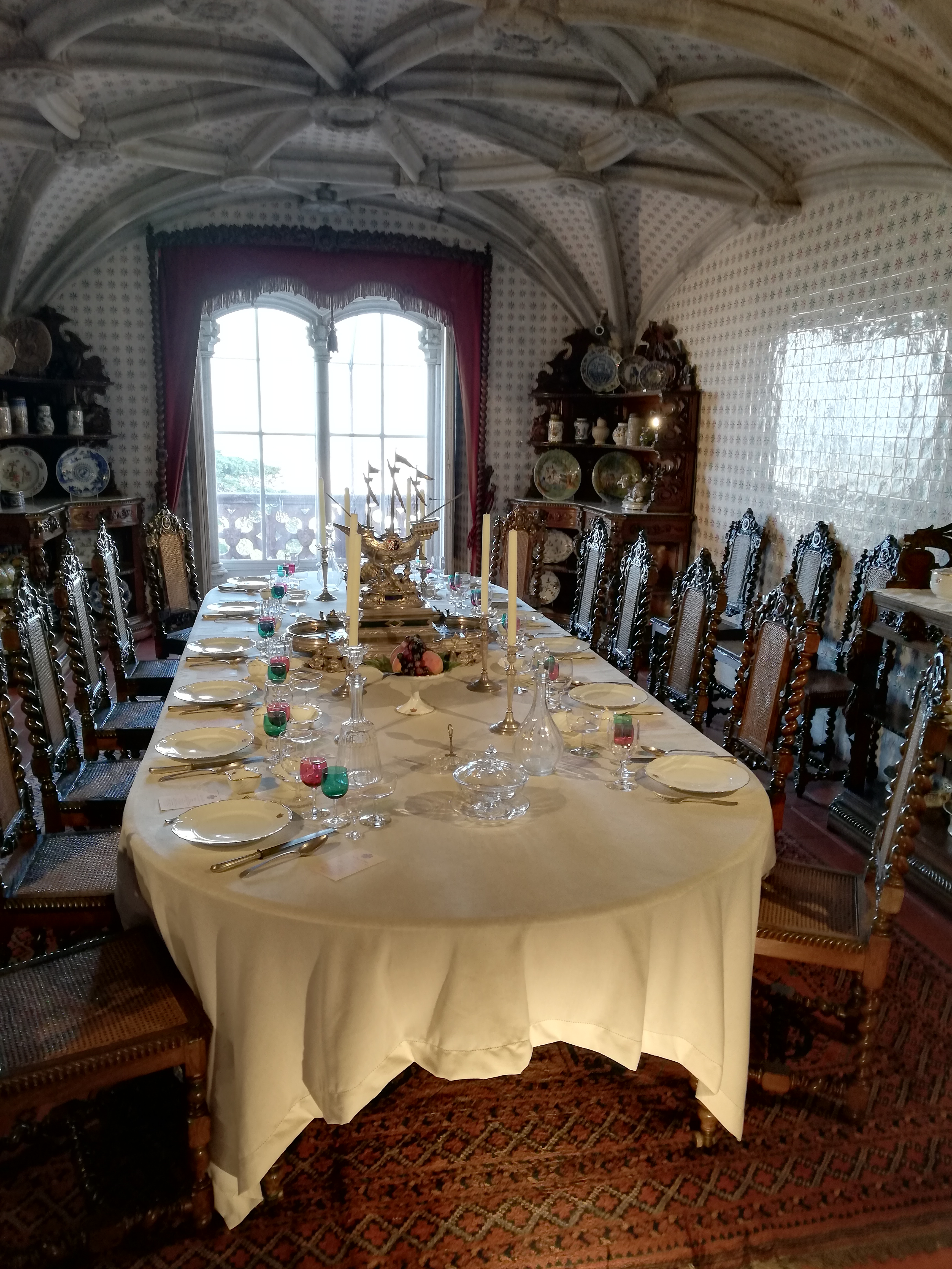 Small break of 20 min made us new and fresh again! We purchased the entrance tickets and entered the a Romanticist castle on the top of a hill in the Sintra Mountains above the town of Sintra. The importancy of this place says that it is a national monument and constitutes one of the major expressions of 19th-century Romanticism in the world. The palace is a UNESCO World Heritage Site and one of the Seven Wonders of Portugal. It is also used for state occasions by the President of the Portuguese Republic and other government officials.
