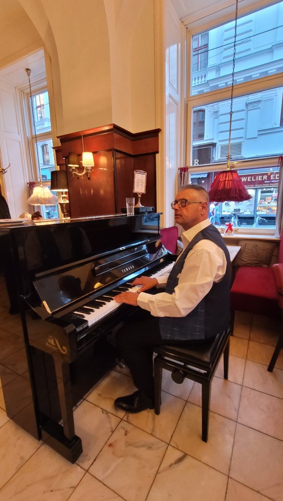 In Mozartcafe we had a chance to listen the music played live on a piano. Vienna is a musical city and to see a scene like this is quite usual here. This is where Graham Greene wrote The Third Man.