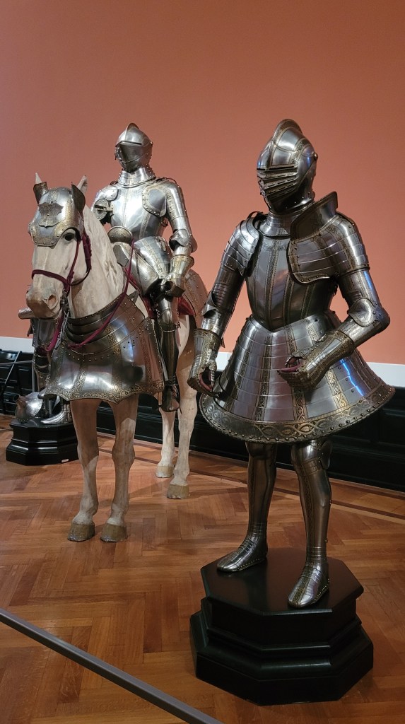 I entered to see the Imperial Armoury. The Viennese collection numbers among the best of its kind in the world. Furthermore, it is the best-documented collection of court arms and armour in the western world, since the exhibits were generally created or acquired in connection with important political occasions: on the occasion of military campaigns, Imperial Diets, ceremonies of homage, coronations, engagements, marriages and baptisms. No family of rulers was connected by marriage with so many European countries as were the Habsburgs. For this reason, nearly all western European princes from the 15th to the early 20th centuries are represented with armour and ornamental weapons.