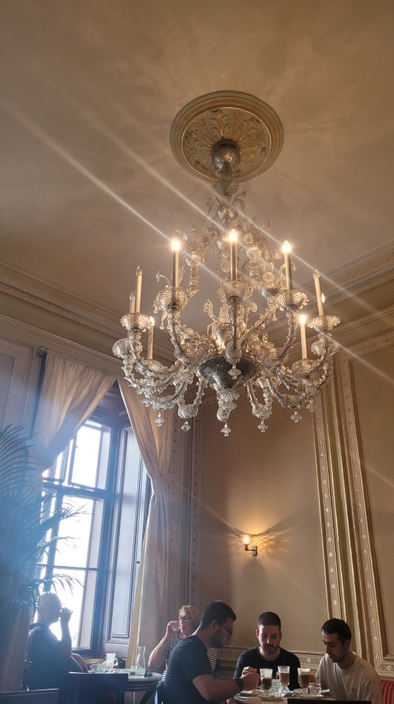I was spending loads of my time in the called Harry Potter library: old wooden tables and chairs that make squitchy noise everytime you move a bit, green art nouvea table lamps, chandelier, tall book shelfs that go up until the ceiling…