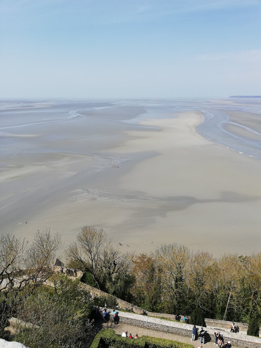 As you can see, there is an approach via the bridge. The buses are constantly circuiting around. However, many people do take the courage to walk through the mud when the tide is low. It is highly recommended to do it in the group as yearly people die by getting stuck in the vivid mud and not being able to get out of it as the tide is getting high and sea is approaching…