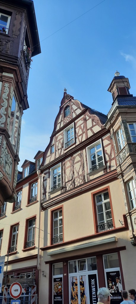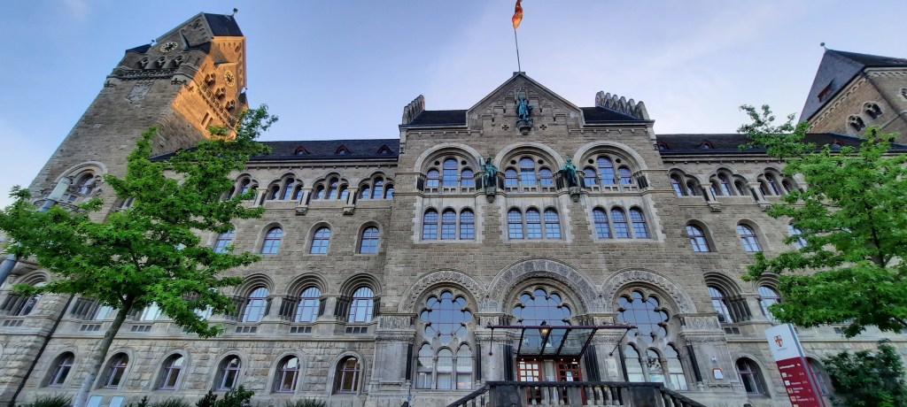 I couldn’t skip The cultural centre Forum Mittelrhein and the Kulturbau Forum Confluentesstands as a singular, solitary volume on the square and is wrapped in a striking, partly translucent shiny façade that reflects the sky and the clouds. It houses the public library, the Mittelrhein Museum and the tourist information of Koblenz, with their ‘Zentrum der Rheinromantik’, inviting both tourists and residents to learn more about this beautiful region.