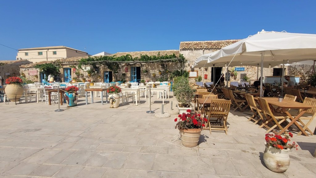 is one of Sicily’s prettiest seaside villages: Marzamemi. It consists of couple of shops and bars, with one main square on which are all the restaurants located. In the evening this place turns into a fairy tale.