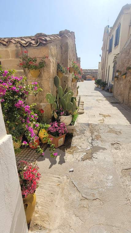 The old centre of the village, most of which dates back to the arrival of the Principe di Villadorata in the mid-18th century, is situated on a little promontory and organised around the extremely picturesque Piazza Regina Margherita. On the south side is the little fishing harbour with its bobbing fleet of colourful wooden boats, on the others a series of charming buildings, including the Church of San Francesco di Paola, the tonnara, the prince’s aristocratic palazzo and a row of fishermen’s houses, whose sky blue doors and potted red geraniums lend a chromatic vivacity to the whole picture. Narrow streets lead off the main square, offering glimpses of the turquoise sea to the east and north.