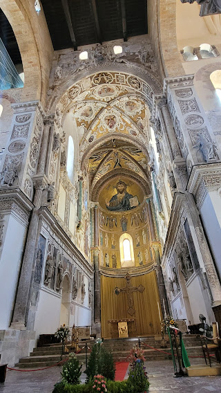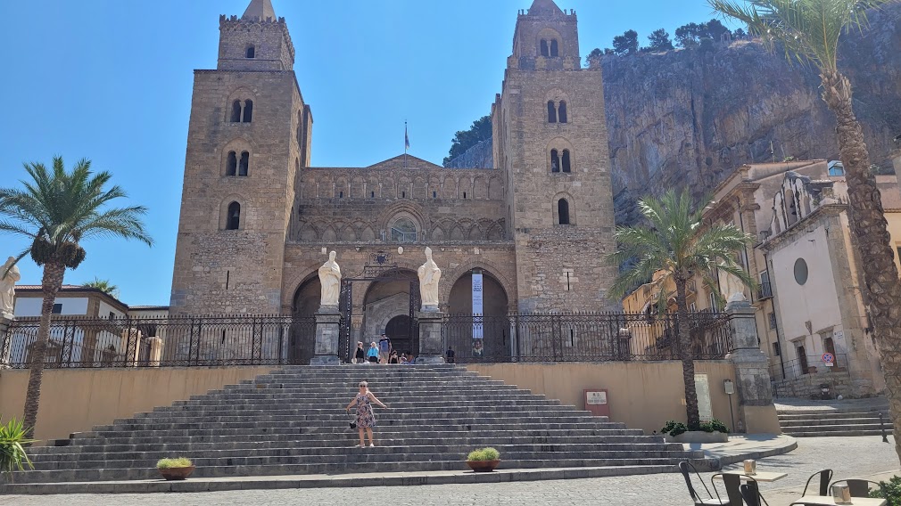 Today, Sicilians are known for their devout faith. Throughout the island, feast days of local patron saints are observed with rich pageantry and popular traditions. The Cathedral of Cefalu is one of the greatest examples of Norman architecture in all of Sicily. Erected between 1131 and 1240 in the Norman architectural stye, it is believed the church was the result of a vow made to the Holy Savior by King Roger II, who survived a storm and arrived safely on the beach nearby. The building has a fortress-like character, and seen from a distance it dominates the skyline of the surrounding medieval town.