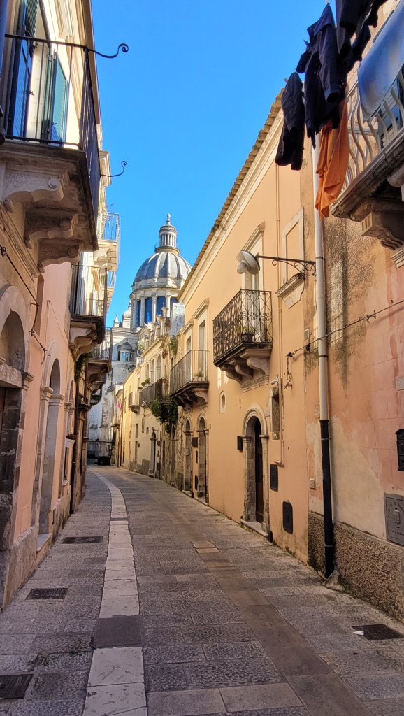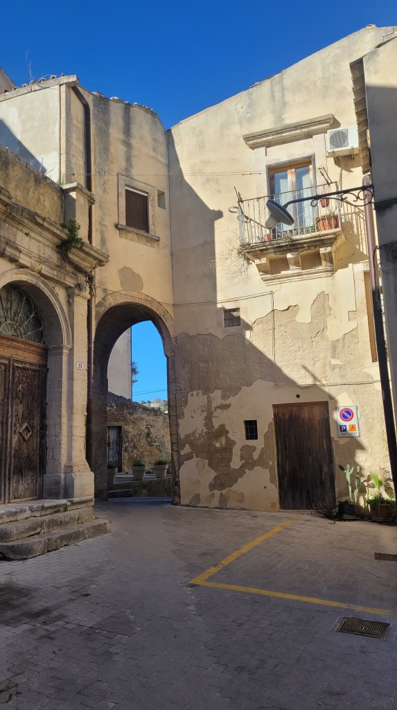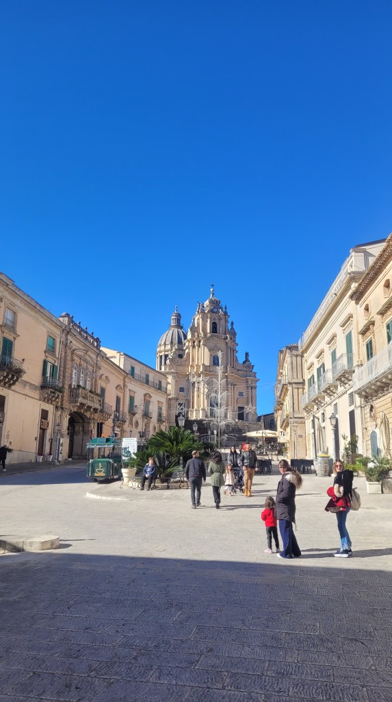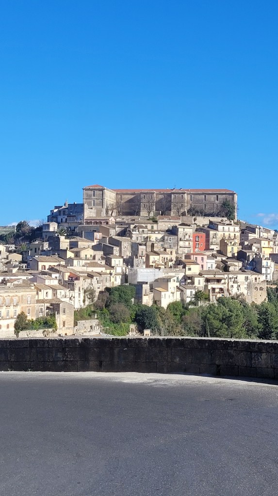 Ragusa is a city on the southern side of the island of Sicily It is built on a wide limestone hill between two deep valleys, Cava San Leonardo and Cava Santa Domenica. Driving there was super interesting. There is no highway to get there so I was driving my petite Tintine through the limestone fields full of oranges.