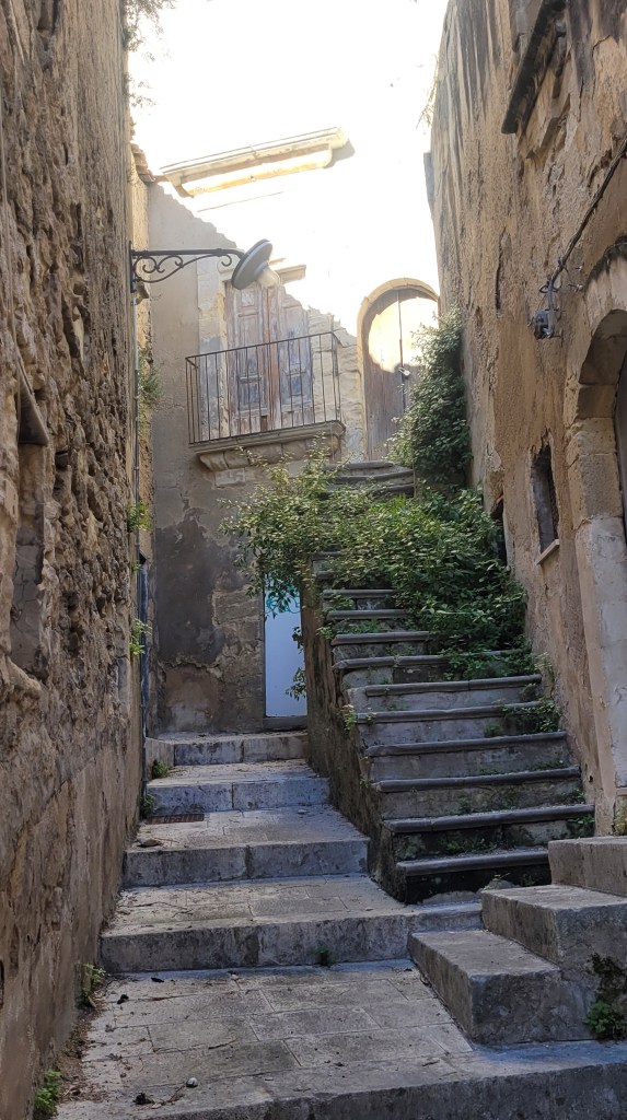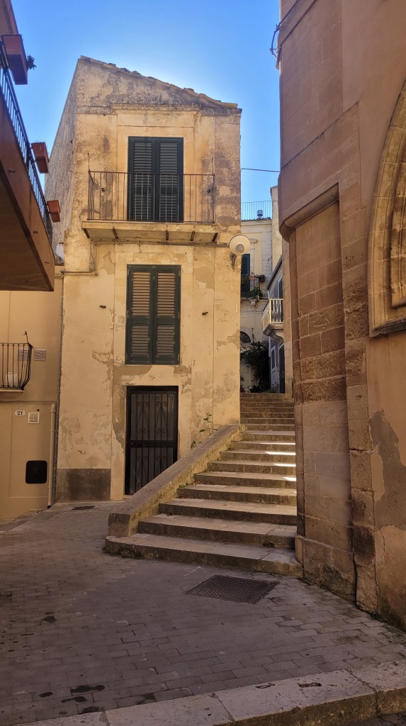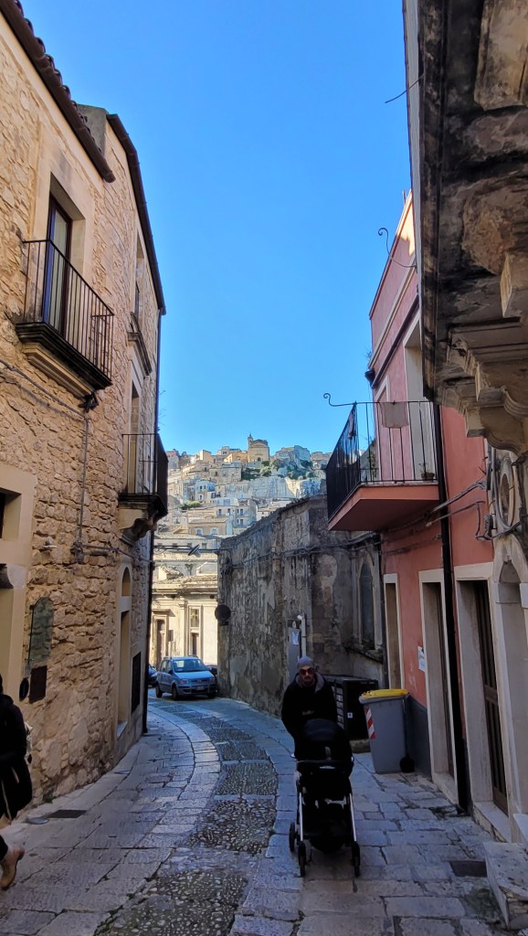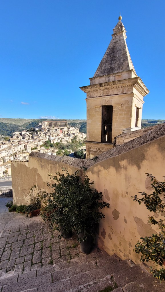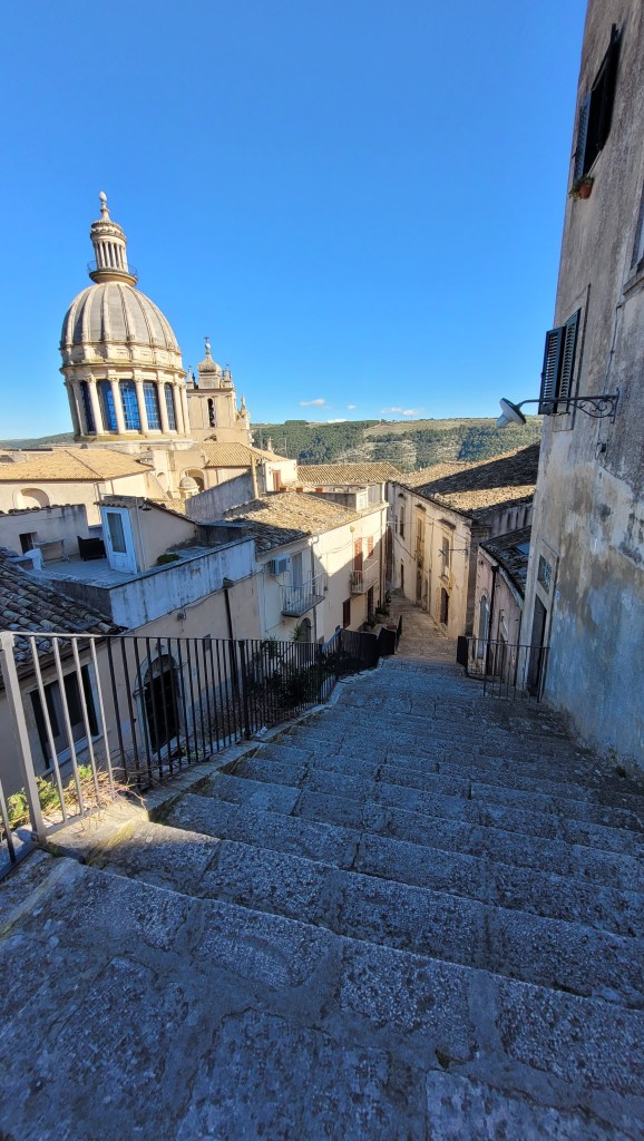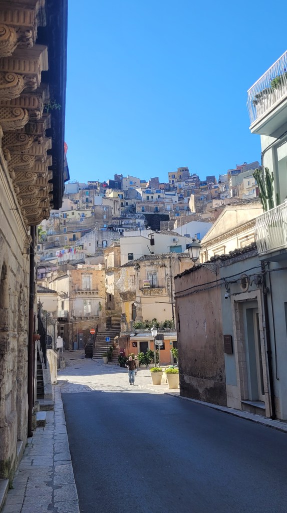 The city has two distinct areas, the lower and older town of Ragusa Ibla, and the higher Ragusa Superiore (Upper Town). The two halves are separated by the Valle dei Ponti, a deep ravine crossed by four bridges, the most noteworthy of which is the eighteenth-century Ponte dei Cappuccini. So I started my trip. Up and down the hills.