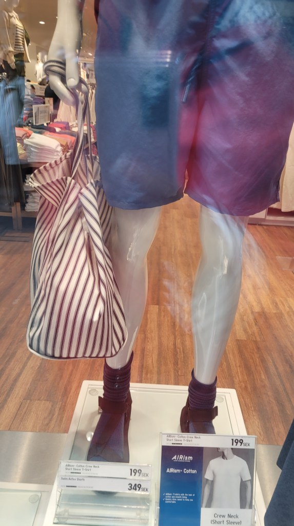 Unfortunately, socks and sandals became a vibe — and that vibe is not just “athlete shuffling between locker rooms.” Instead, this footwear trend has captivated street style stars and fashion designers alike, appearing on runways and the soles of fashion week guests the world over. Sweden joined the fashion crime too. Doing some window shopping, I could have not pass by and not see it…