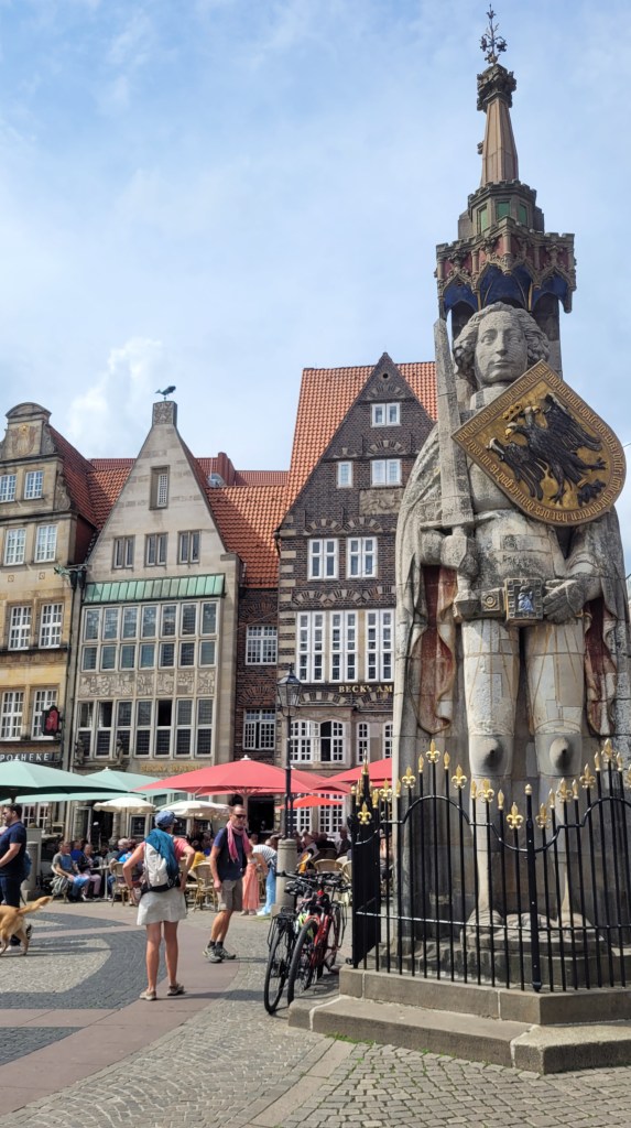 One of my favourite things in Bremen is a statue of Roland, erected in 1404 facing the cathedral, and showing Roland, paladin of the first Holy Roman Emperor Charlemagne and hero of the Battle of Roncevaux Pass. In high school, we had to read La Chanson de Roland. An 11th-century chanson de geste based on the Frankish military leader Roland at the Battle of Roncevaux Pass in AD 778, during the reign of the Carolingian king Charlemagne. It is the oldest surviving major work of French literature so seeing this statue was just a mind blown to me.