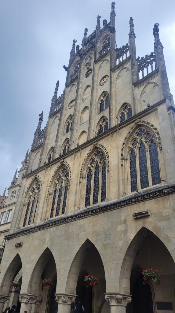 Perhaps the most intriguing part is St Lambert’s church from the 11th century. In 1534, an apocalyptic Anabaptist sect, led by John of Leiden, took power in the Münster rebellion and founded a democratic proto-socialistic state. They claimed all property, burned all books except the Bible, and called it the “New Jerusalem”. John of Leiden believed he would lead the elect from Münster to capture the entire world and purify it of evil with the sword in preparation for the Second Coming of Christ and the beginning of the Millennium. They went so far as to require all citizens to be naked as preparation for the Second Coming.
