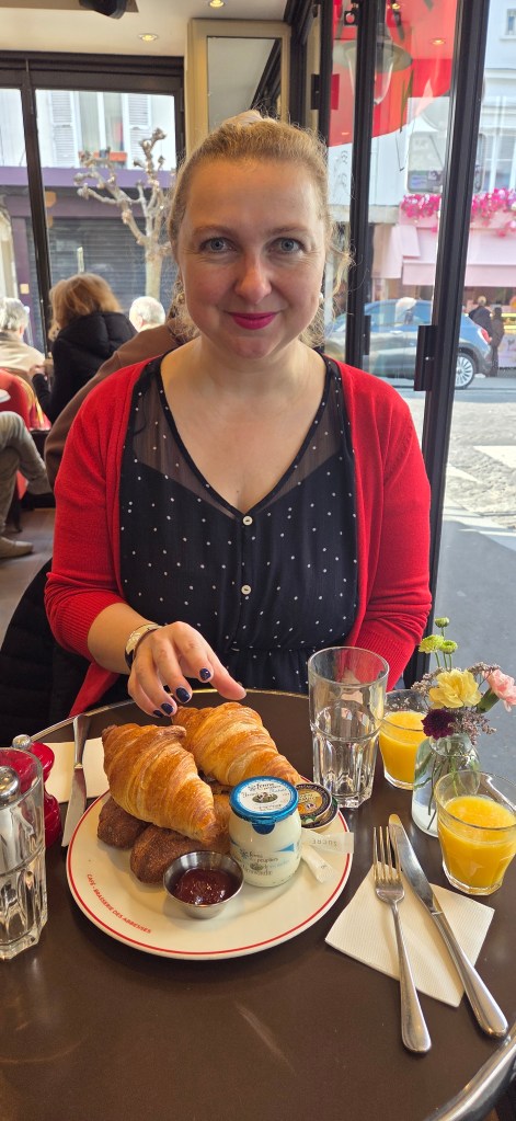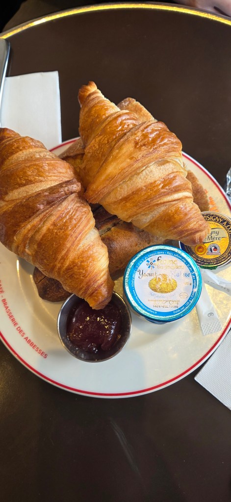 My Paris morning started with a big breakfast at Nezir’s in Montmartre: with a buttery croissant, rich scrambled eggs, and thick Normandy yogurt that instantly took me back to childhood mornings in Croatia with its sweet-sour, full-bodied taste. The butter and jam completed that simple, deeply satisfying Parisian ritual. It was one of those breakfasts that makes the whole city feel warm before the day even begins.
