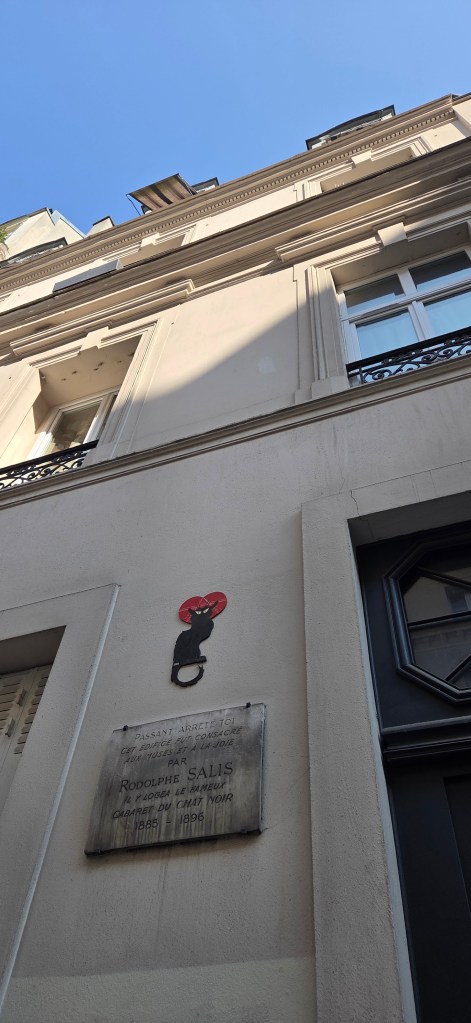 After breakfast, we continued on foot through Montmartre and noticed a plaque on a façade marking the home of Rodolphe Salis, the legendary founder of Le Chat Noir, one of Paris’s most iconic cabarets.