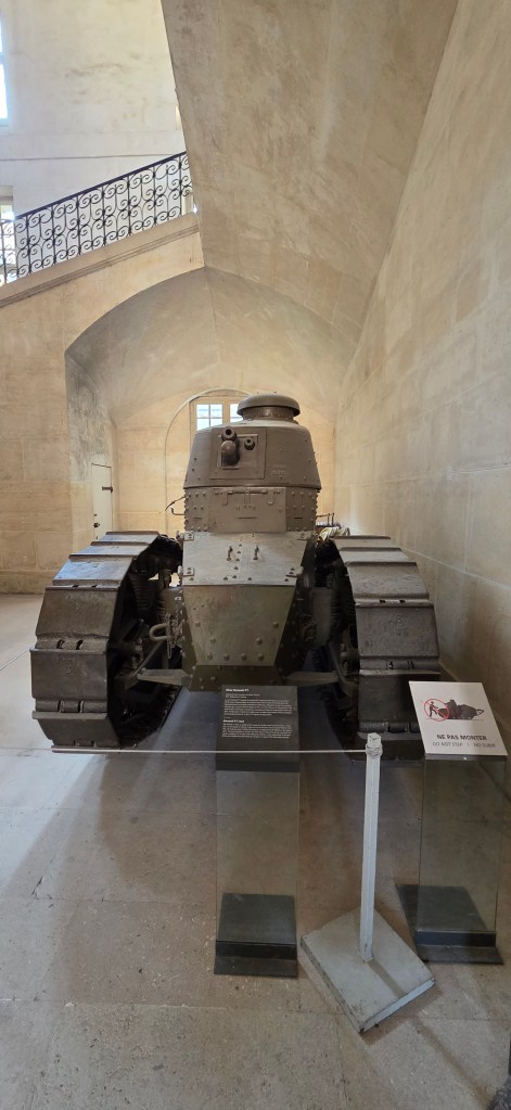 As we moved into the Musée de l’Armée and began the visit chronologically, the first thing that caught my eye was the small Renault FT tank at the entrance. At first glance it almost looks charming in its compact form, but knowing it was one of the defining machines of the First World War quickly strips away any sense of innocence and turns it into a quiet symbol of how modern warfare began to change forever.