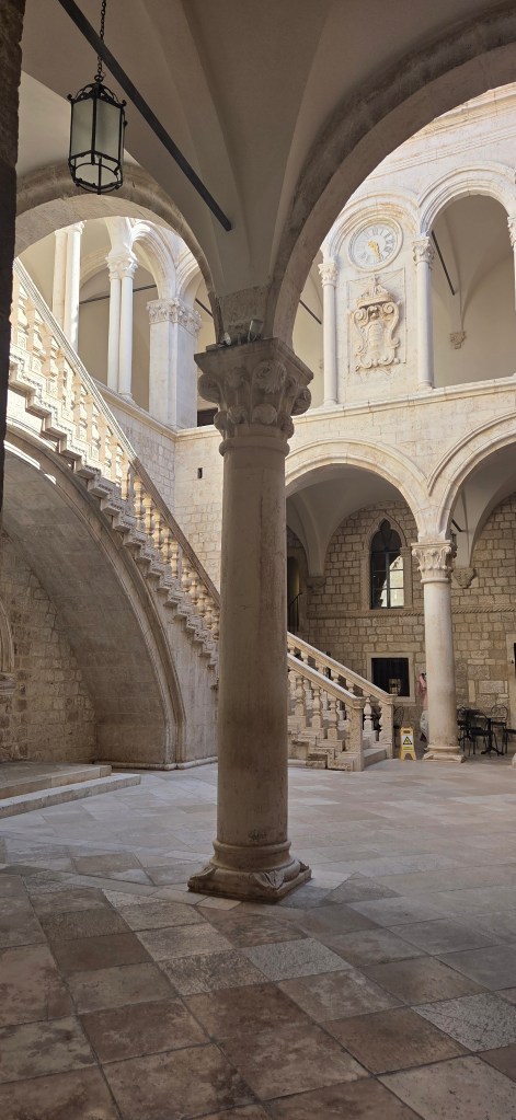 The Rector’s Palace gave us one of the most fascinating glimpses into the political genius of the old Republic of Ragusa, where power was carefully designed to never remain in one person’s hands for too long. The Rector served for only one month, lived inside the palace during that time, and was constantly reminded by the famous inscription to leave private matters behind and focus only on the affairs of the state. I loved the detail that during periods of strong jugo—the warm southern wind said to bring heavy pressure and cloud the mind—even important decisions were often postponed, as if Dubrovnik understood long before modern science how atmosphere can shape judgment.