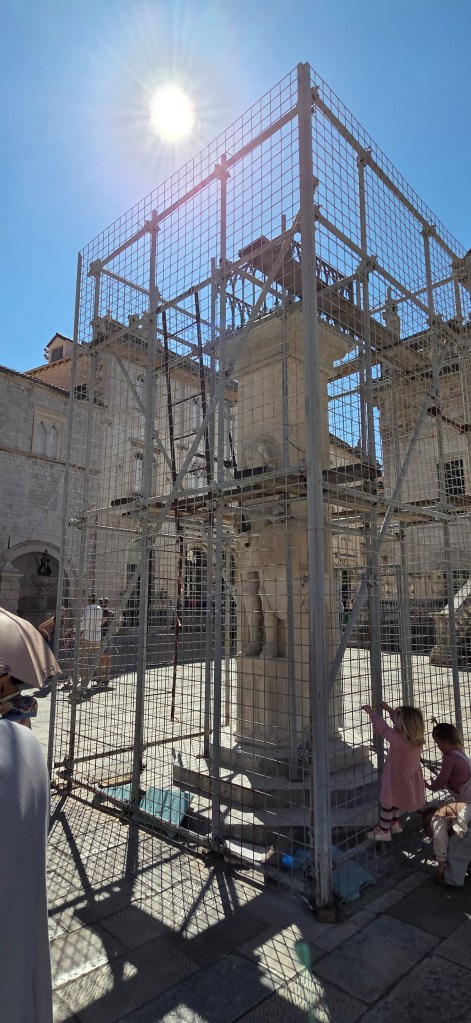 The story of Orlando comes from the medieval knight Roland, known in Italian as Orlando, a legendary hero of Charlemagne who later became a symbol of freedom and civic justice across Europe. Dubrovnik adopted his figure in 1418, linking him to the local legend that he helped defend the city from attackers near island of Lokrum, and over time he became a symbol of the Republic’s liberty, public law, and merchant fairness. That is why the column was not just decorative—it was the place for proclamations, justice, the city flag, and even the official measure for trade, making Orlando a perfect symbol of Dubrovnik’s independent spirit.
