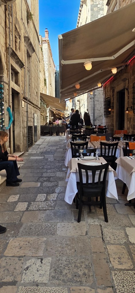 Dubrovnik’s old port felt incredibly peaceful, with the sea gently moving beneath the walls of Fort St. John, once the guardian of the harbour and the goods arriving from faraway seas. The great stone halls that once stored merchandise now open into beautiful restaurants with views over the port, the sea, and the church of Saint Blaise rising nearby—a perfect blend of commerce, history, and architectural beauty.
