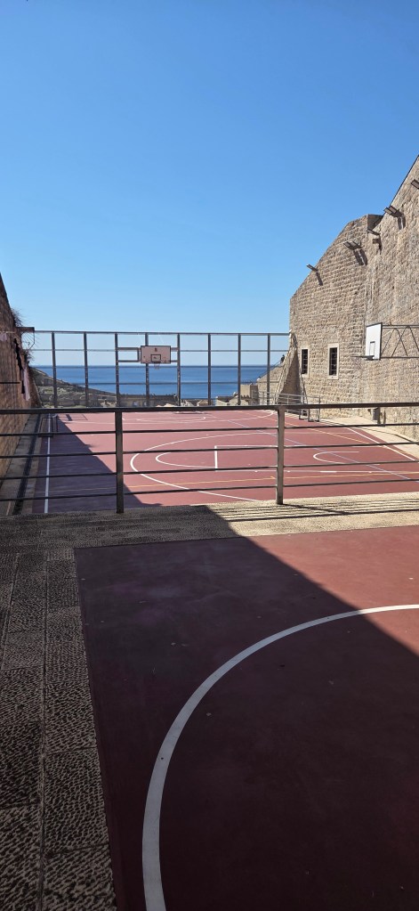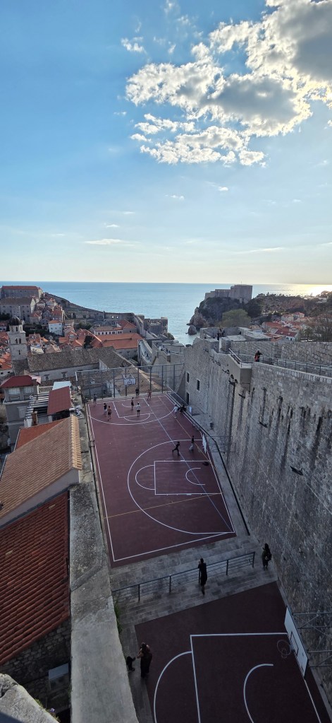 What fascinated me was discovering a basketball playground squeezed into the middle of the old city, surrounded by walls, houses, and church towers, yet somehow still opening to the sea. It felt like such a perfect Dubrovnik contrast: medieval stone everywhere, and then suddenly a court full of modern city life. If the ball escapes, though, someone definitely has a long climb down to rescue it.