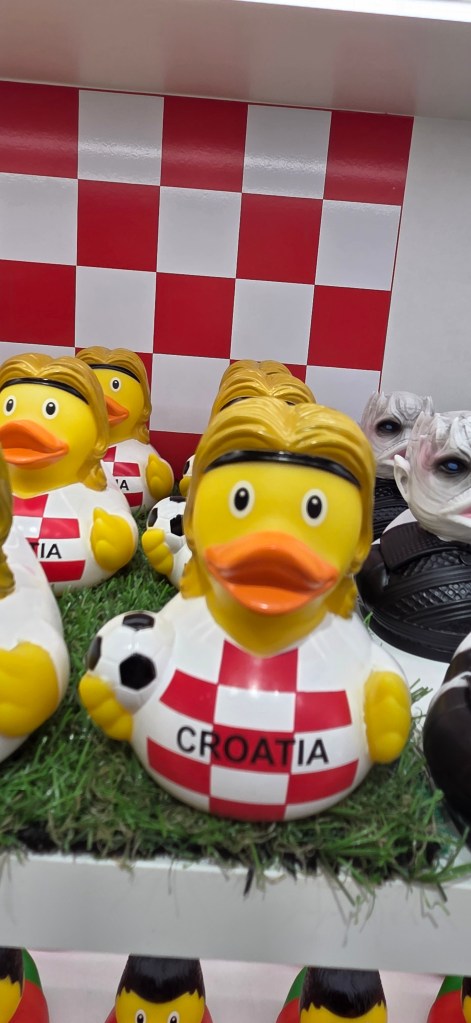 After lunch, we burned a few more calories the Dubrovnik way—through shopping and wandering. One shop was full of ducks in every possible shape, but the funniest one had to be the duck version of Luka Modrić, which I immediately renamed Luka Kvakić. It was one of those playful little travel moments that makes a city stay with you.