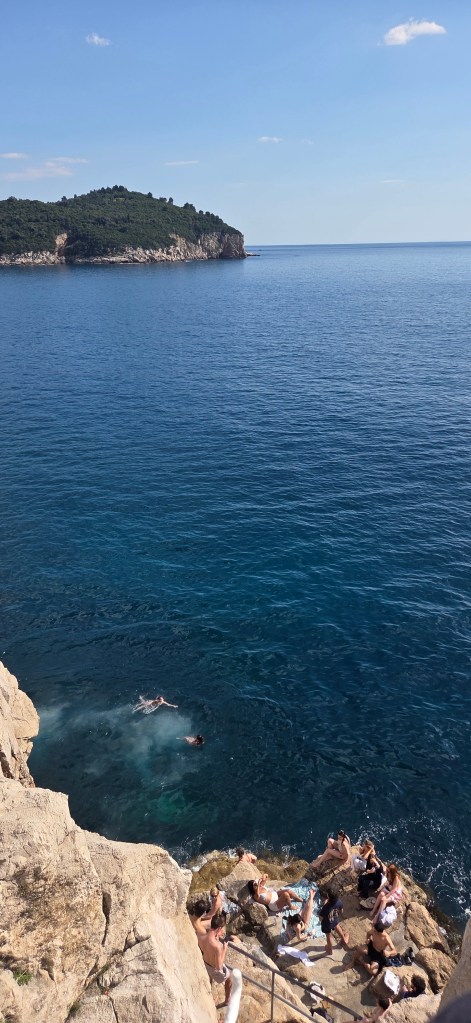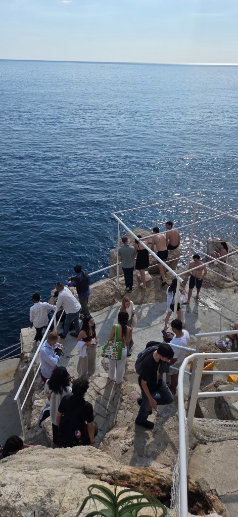 Then came one of Dubrovnik’s most Instagram-worthy moments: Buža Bar, perched on the cliffs with the sea stretching endlessly below. With the wind in your hair, a drink in hand, and the sound of young people laughing as they jump from the rocks into the Adriatic, it feels like pure summer freedom. Watching that fearless energy from the side, there is always that fleeting thought—how wonderful it would be to borrow their youth for just one jump. I only I weren’t pregnant!
