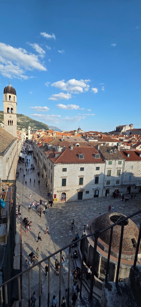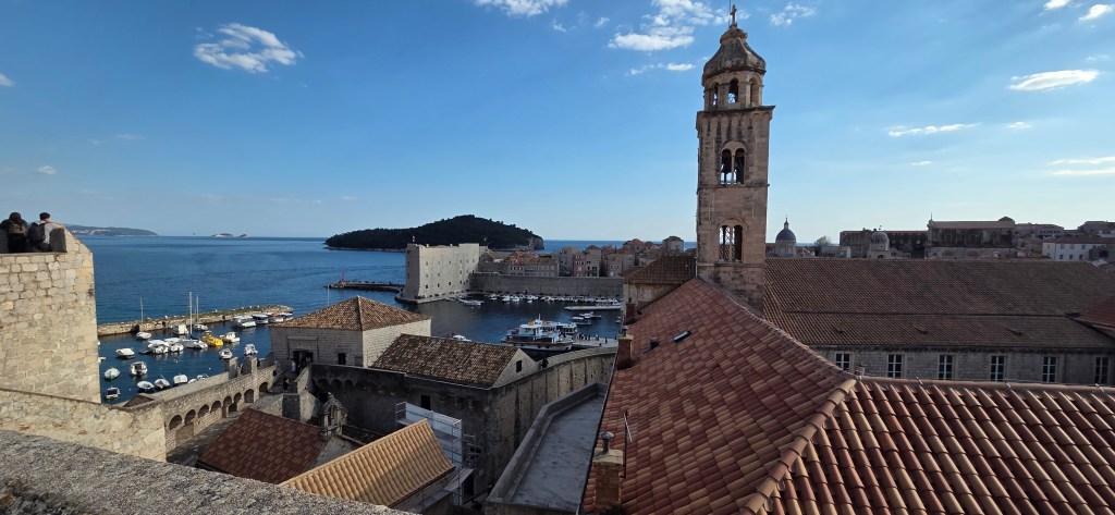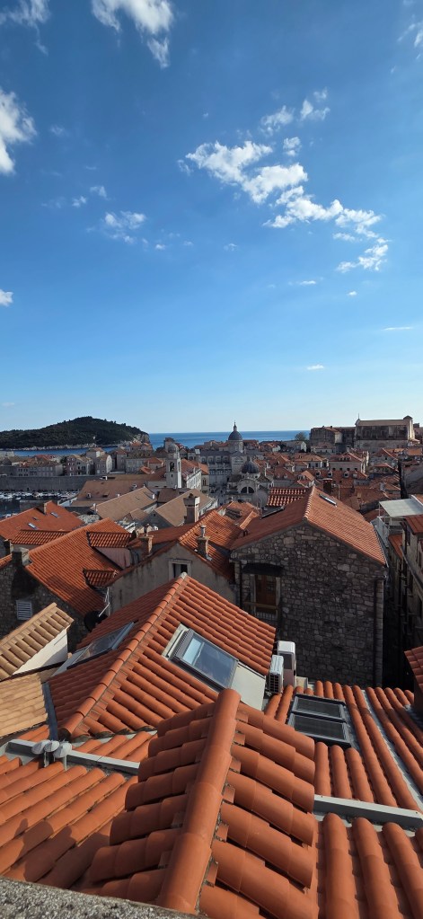Then came the walk along Dubrovnik’s city walls, a full two-hour journey that felt like moving through the city’s history from above. We were lucky to have a gentle breeze, which made the climb far more pleasant, and every turn opened another stunning view over terracotta roofs, the sea, and the forts.