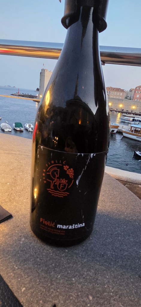 For dinner, we treated ourselves to Restaurant 360, Dubrovnik’s Michelin one-star fine dining landmark, perfectly set above the old port with the medieval walls and Fort St. John in front of us. We began with local Croatian wines, and the sommelier introduced one bottle as a rare selection with only around 1,000 bottles produced, explaining that many top restaurants try to secure allocations from the same label. Whether it was true rarity, expert storytelling, or a touch of fine-dining theatre, it fitted the mood of 360 perfectly—luxurious, slightly mysterious, and beautifully in tune with Dubrovnik’s polished, exclusive charm.
